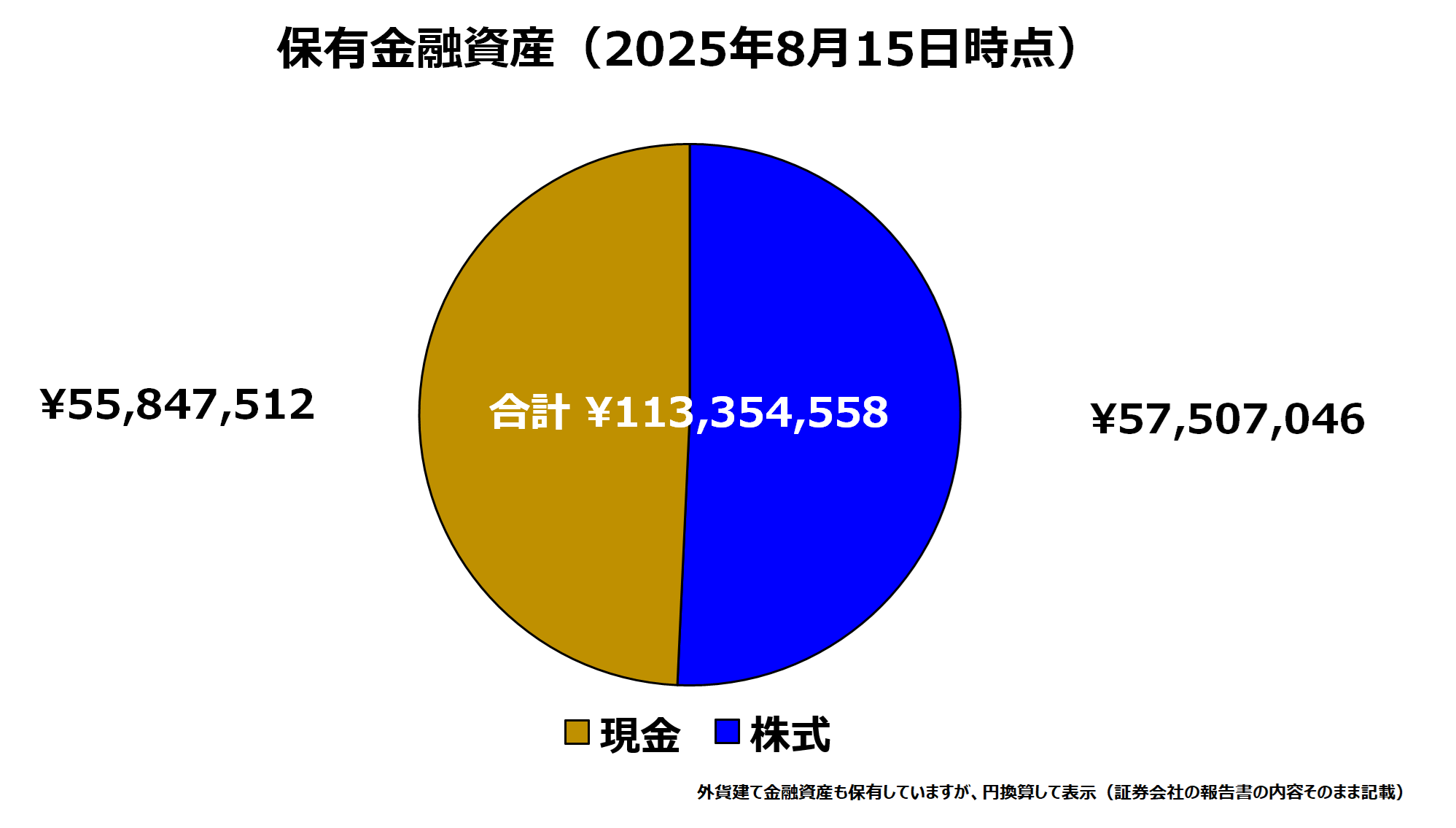 2025年8月15日時点の保有金融資産総額は約1億13百万円。