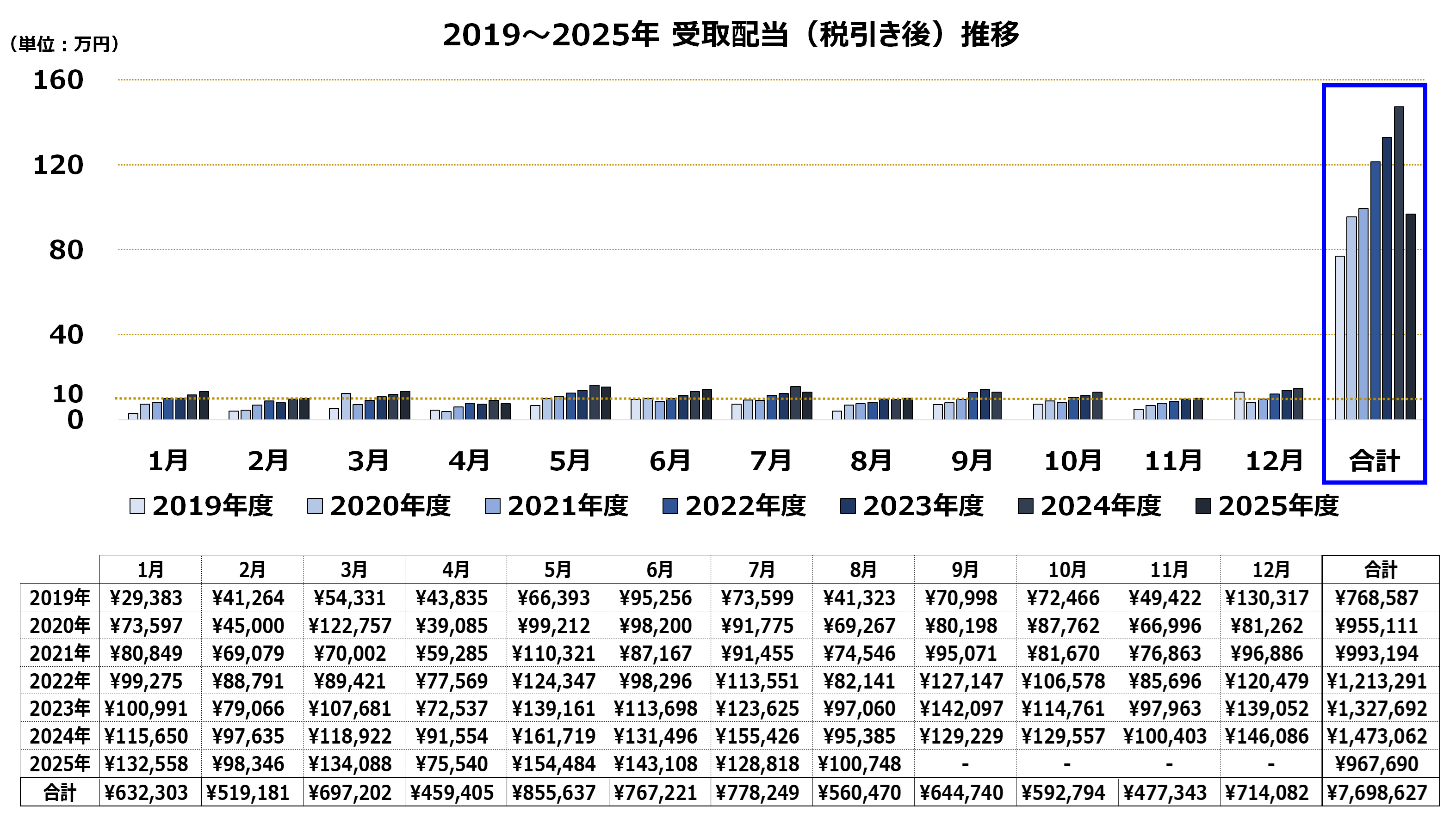 2019年から2025年8月までに約770万円の配当を受け取りました。