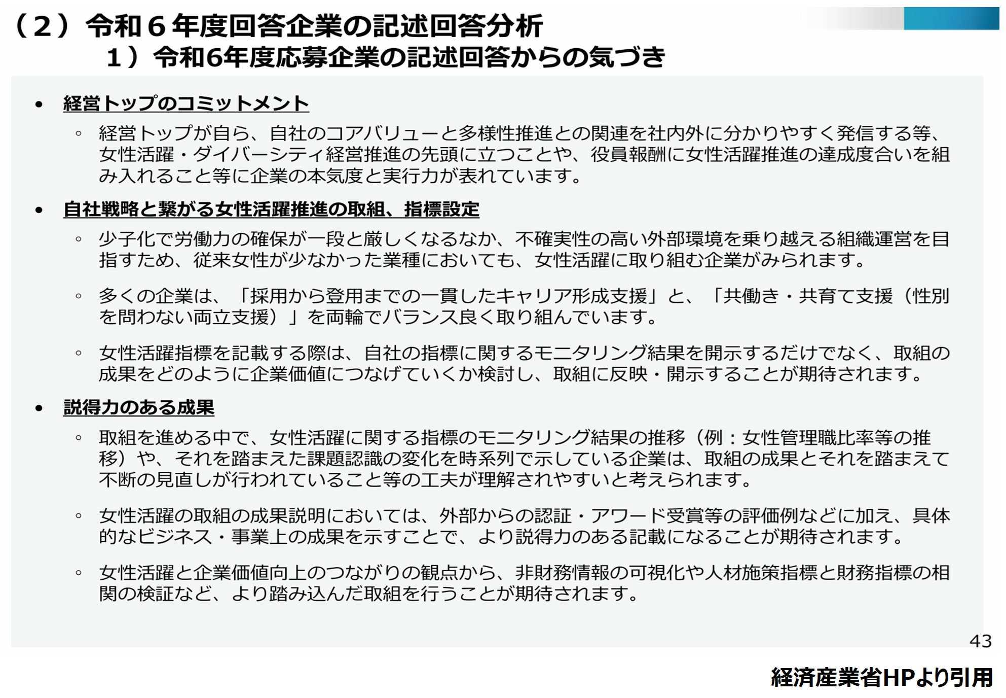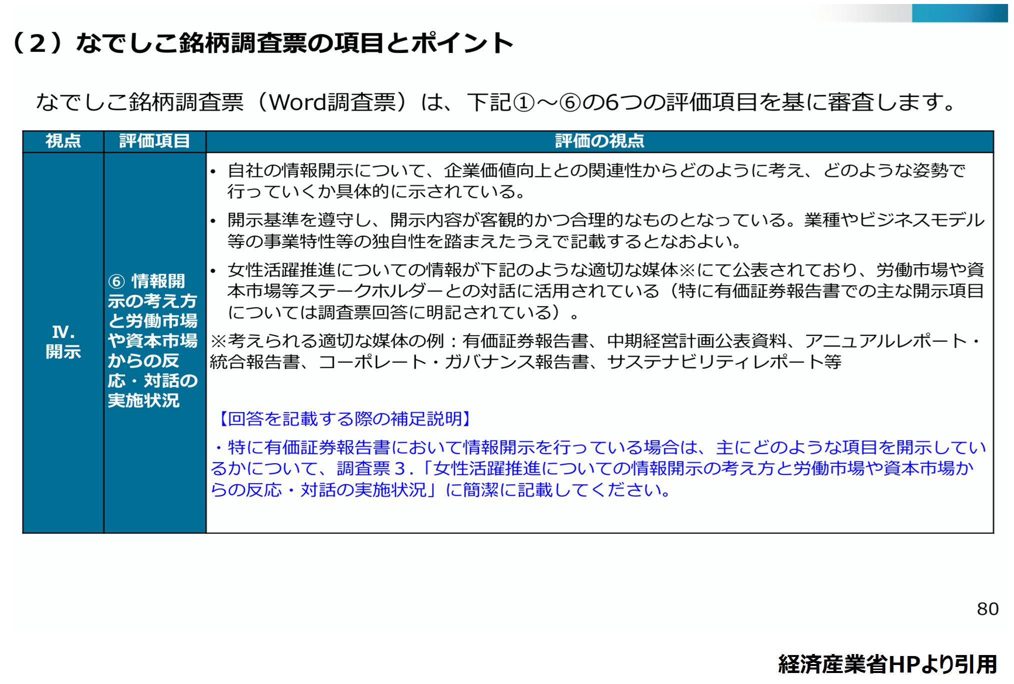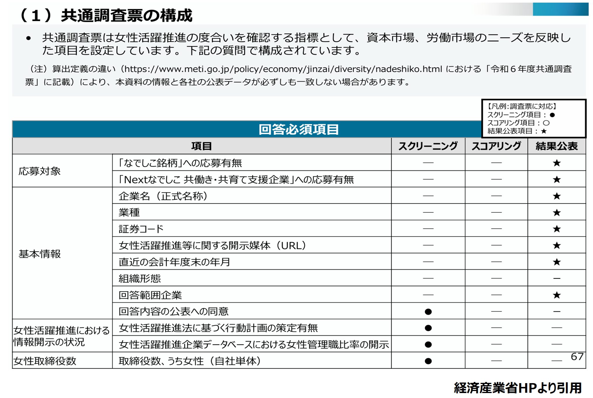 ※「なでしこ銘柄」応募企業から回収した情報に対しては、令和6年度「なでしこ銘柄」レポート内で解説が行われています。