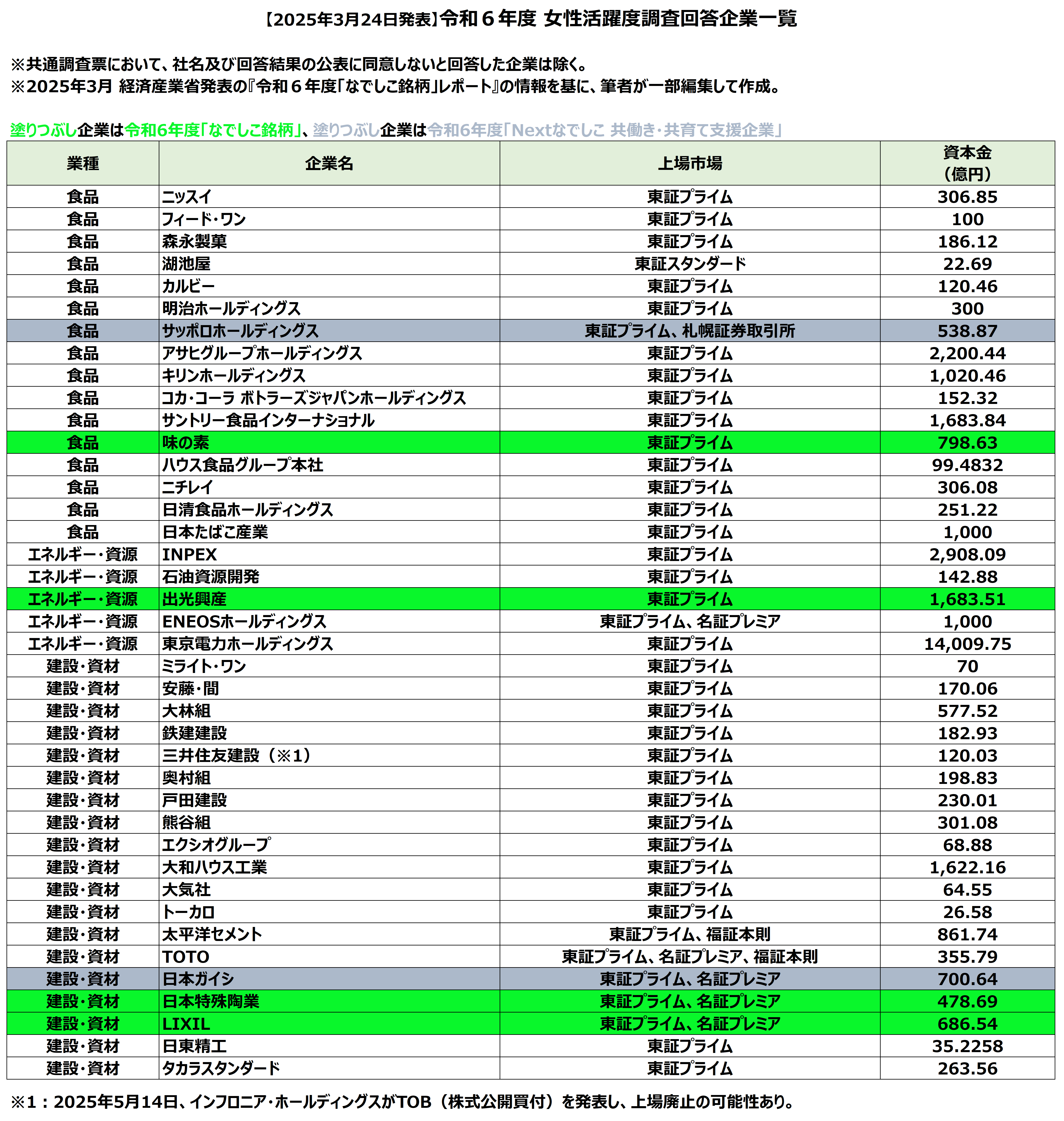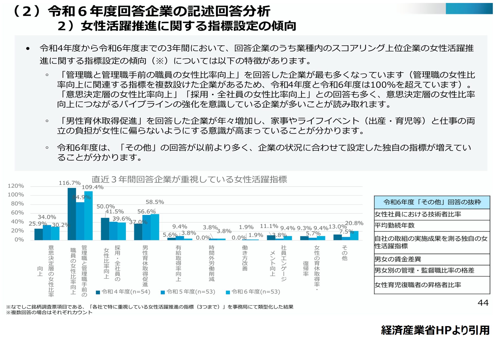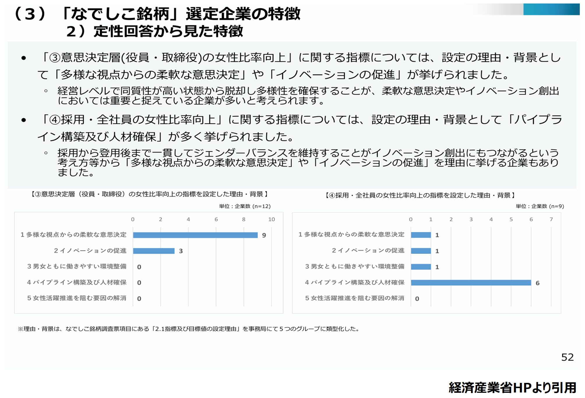 ※「なでしこ銘柄」応募企業から回収した情報に対しては、令和6年度「なでしこ銘柄」レポート内で解説が行われています。