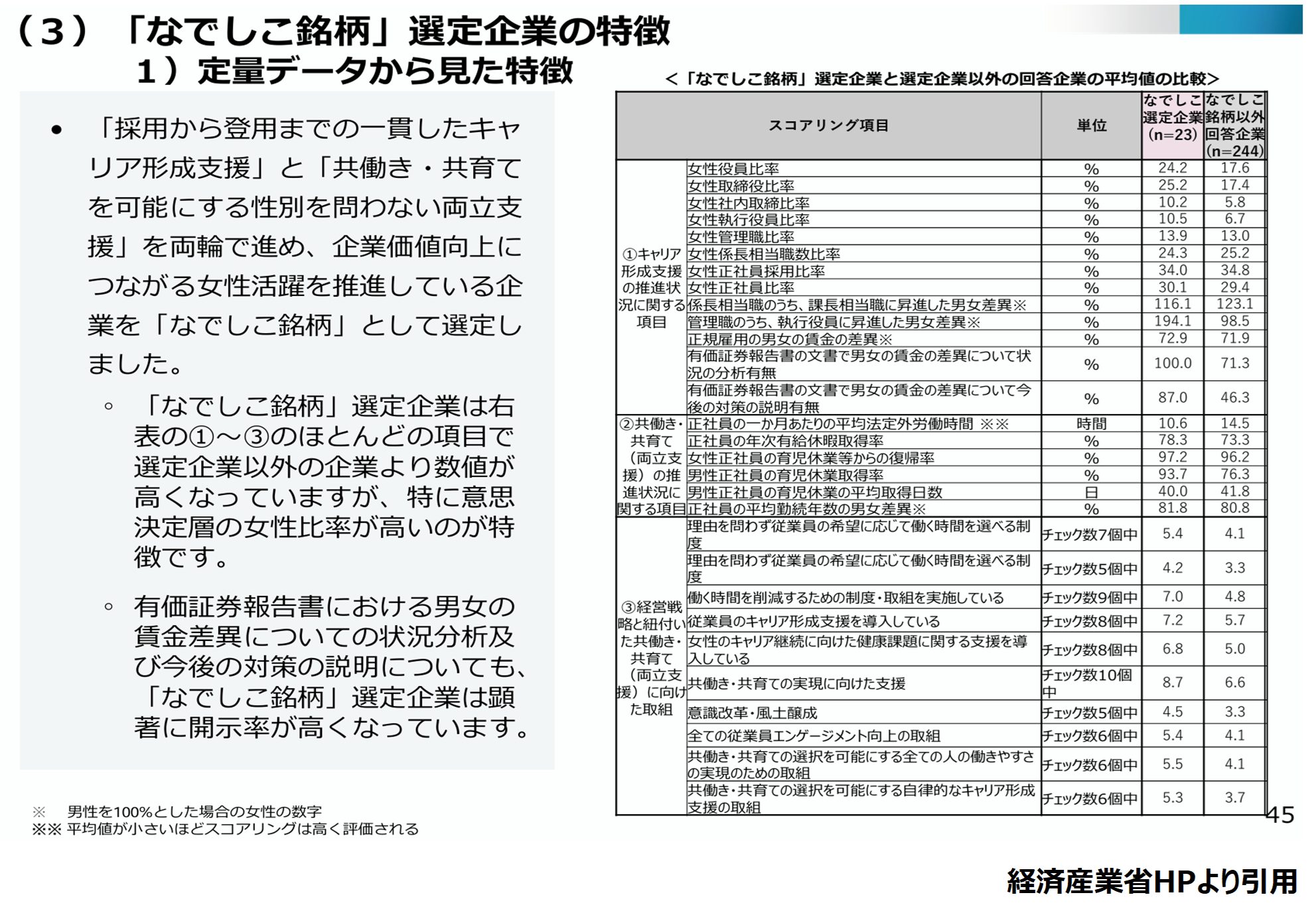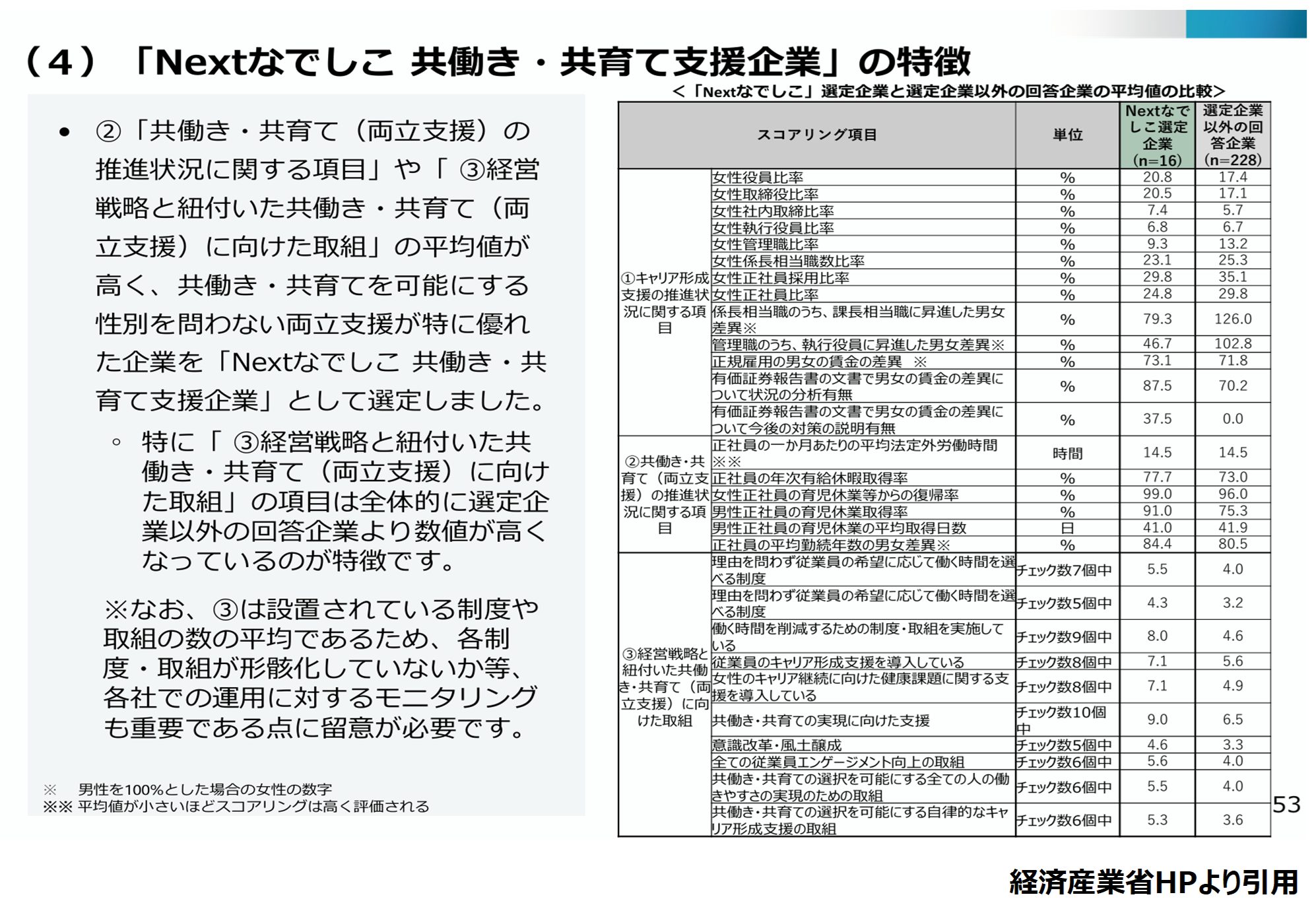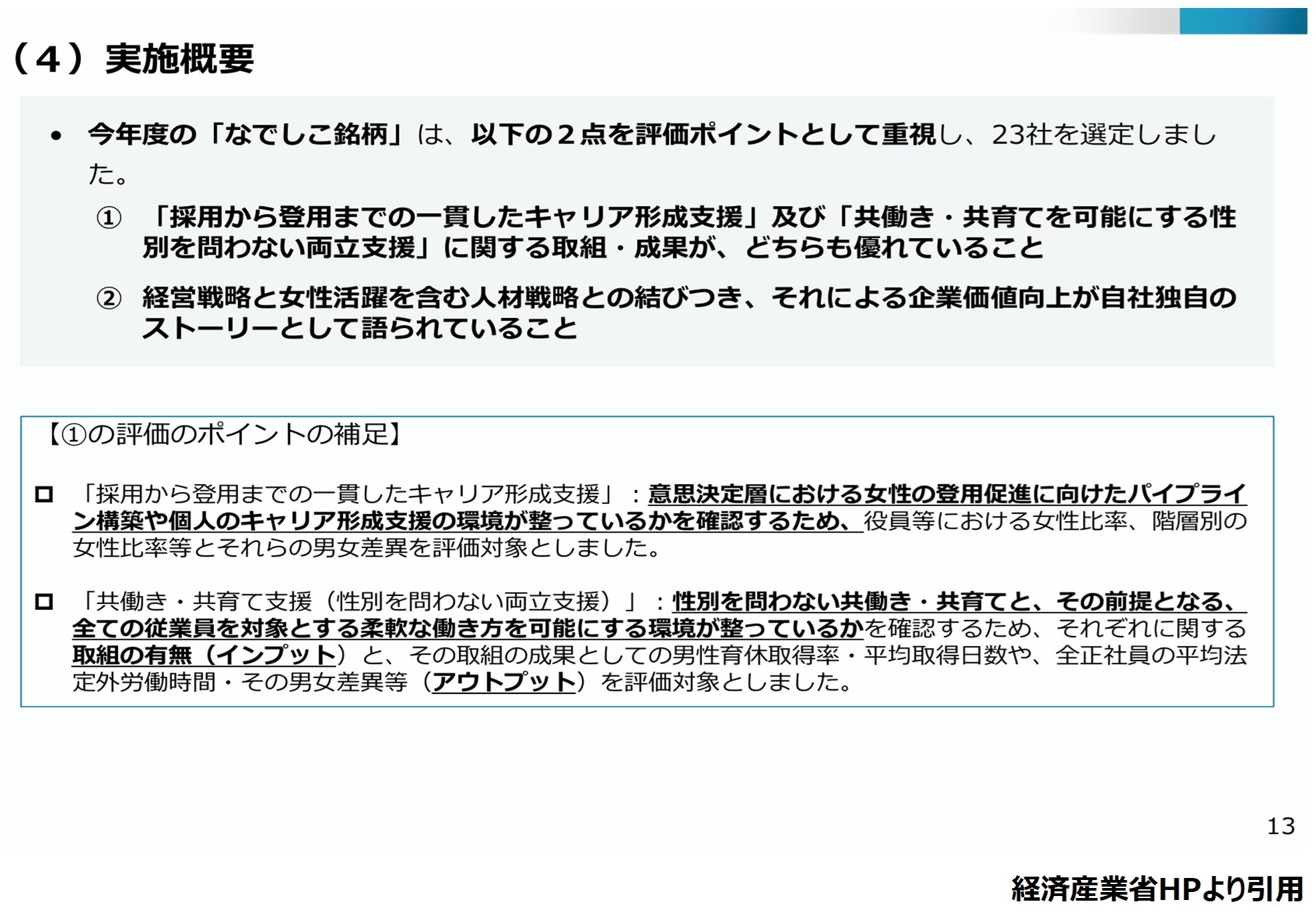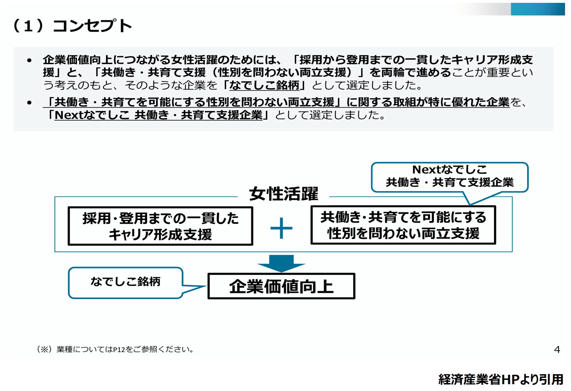 まず、『「なでしこ銘柄」と「Nextなでしこ 共働き・共育て支援企業」選定意義』について確認します。