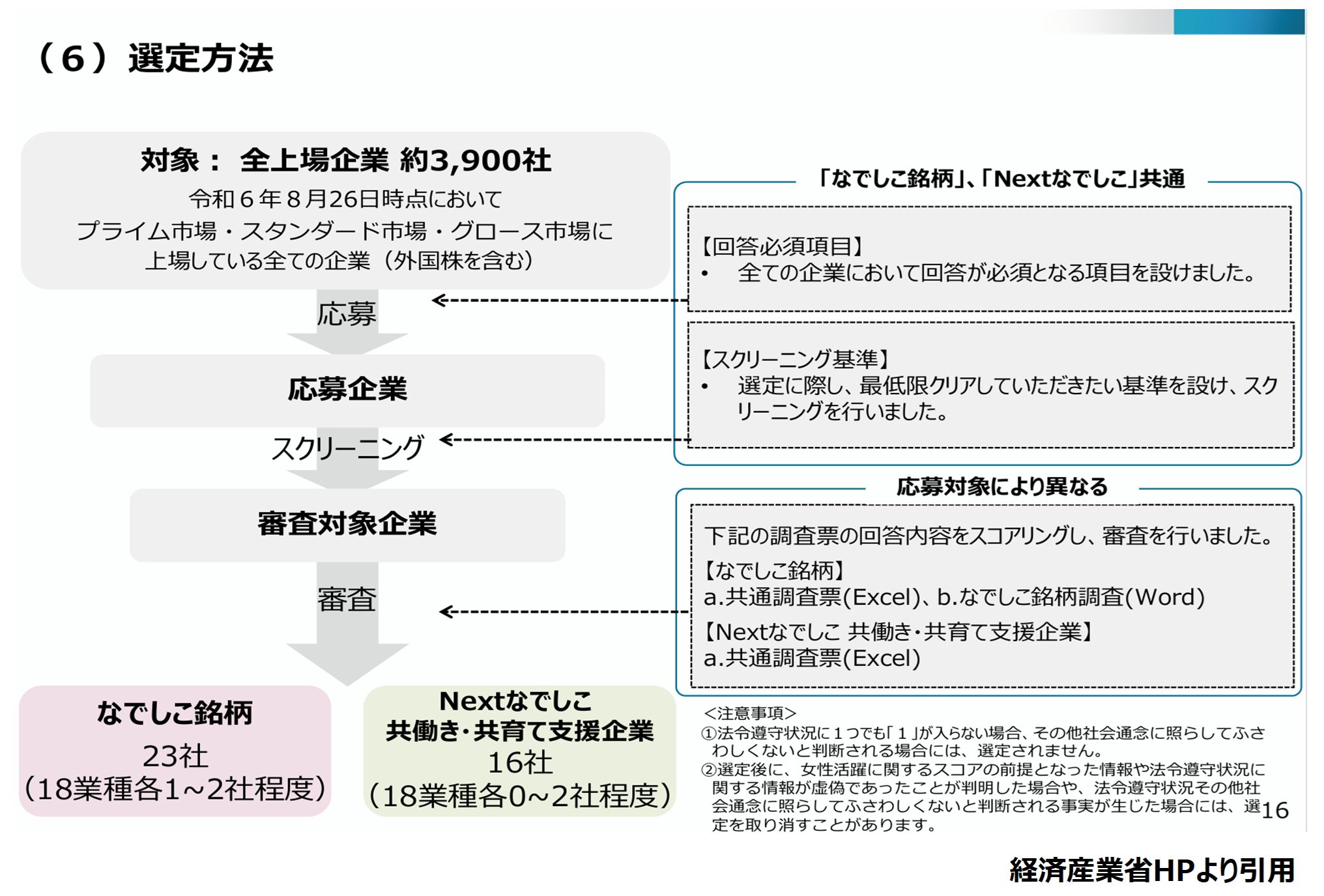 次に、『「なでしこ銘柄」と「Nextなでしこ 共働き・共育て支援企業」選定方法』について確認します。
