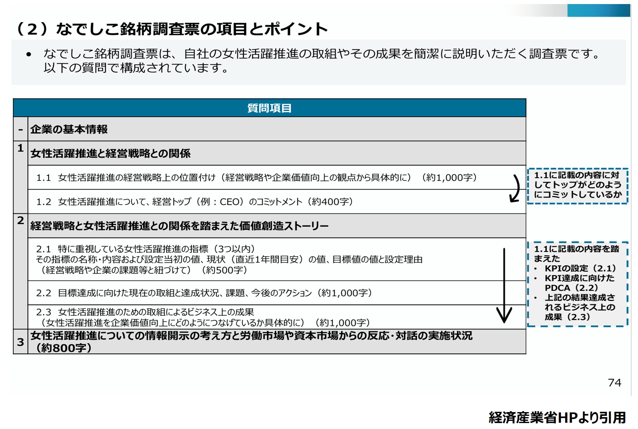 そんな中央省庁の1つである、経済産業省が進める案件の1つが「なでしこ銘柄」であるということを理解しておかなければなりません。