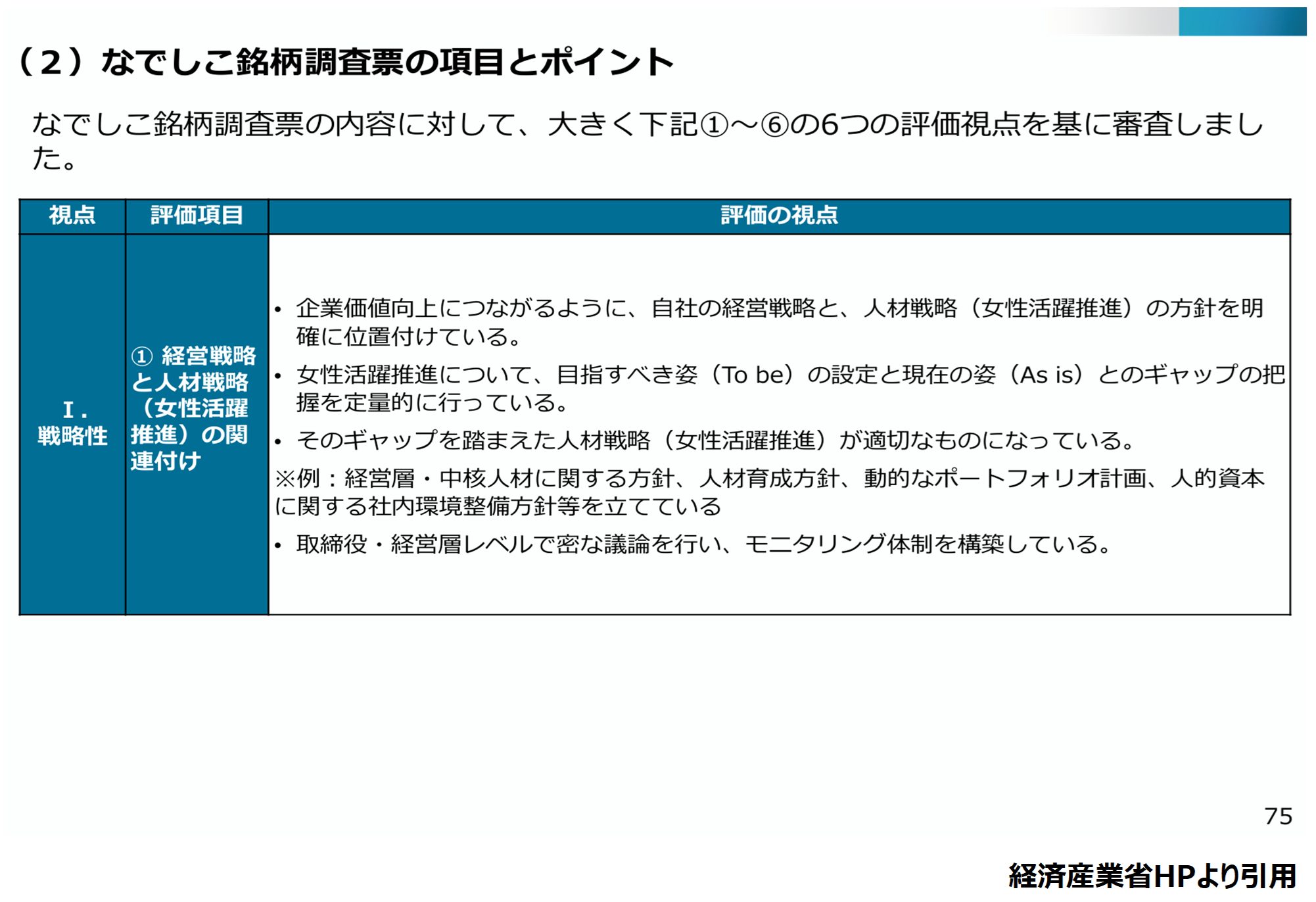 では、上述の欧米の状況を踏まえて、「なでしこ銘柄」について、あらためて確認してみましょう。