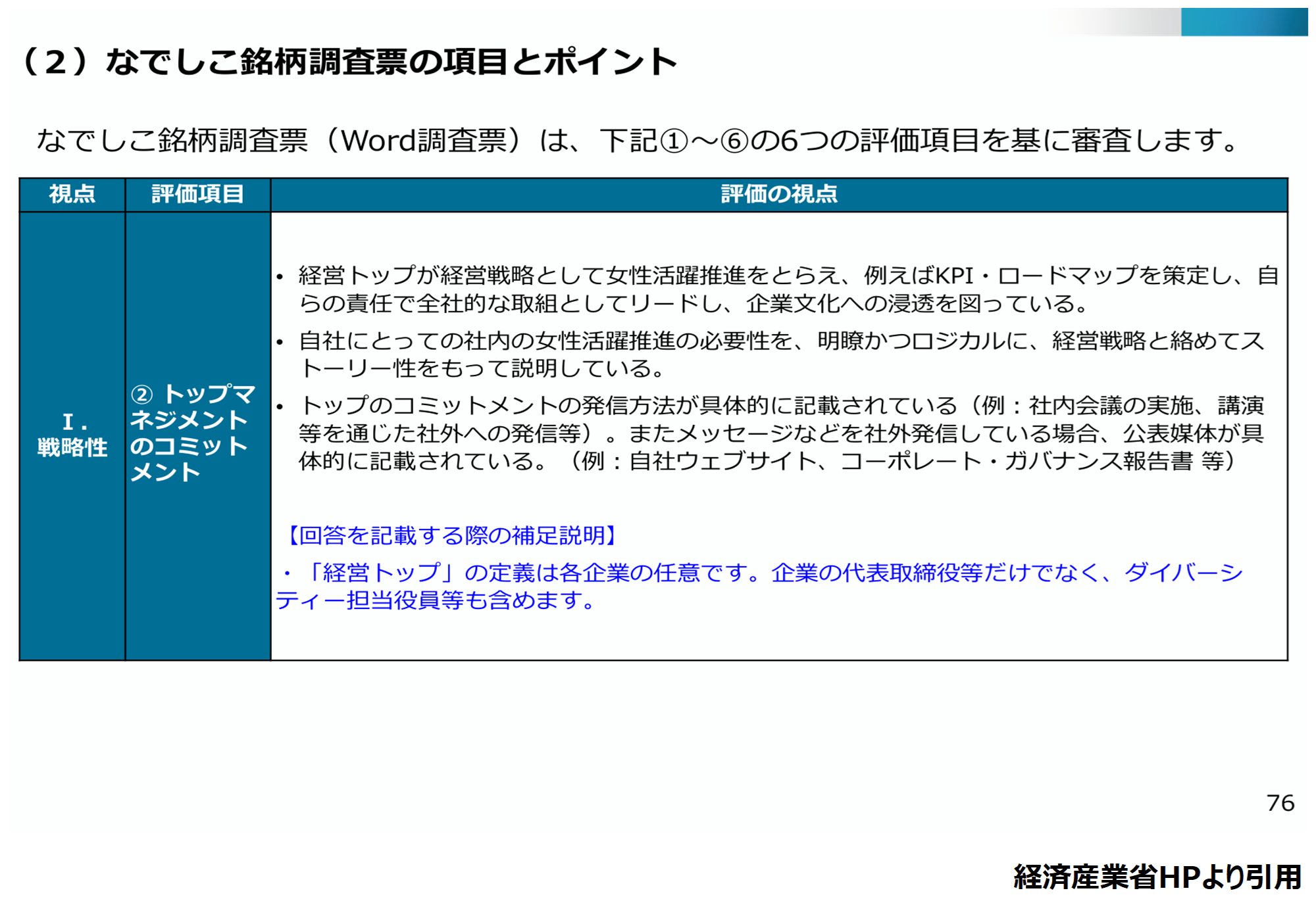 経済産業省として、立場的に、個別の「なでしこ銘柄」ごとに詳細な解説を行えなかった(※)ことは理解します。