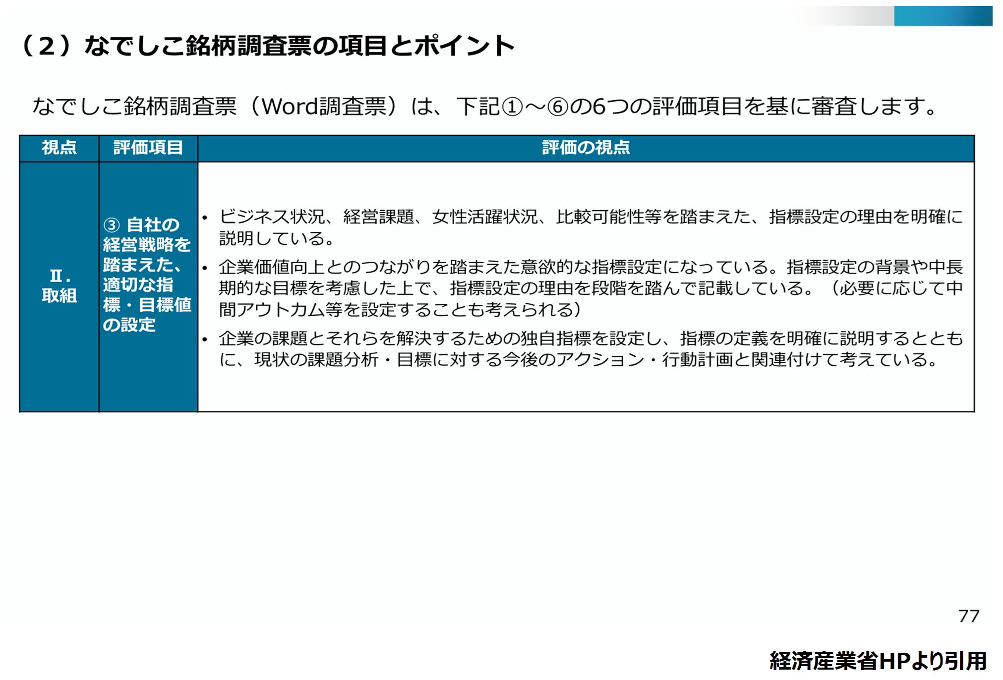 令和6年度の「なでしこ銘柄」の評価ポイントから抜粋
