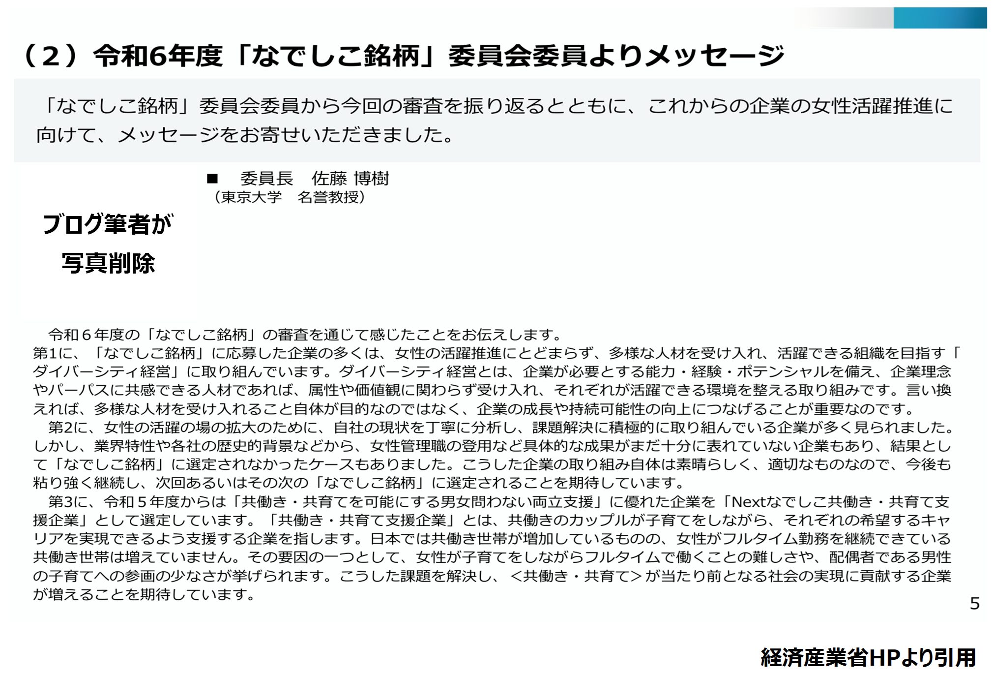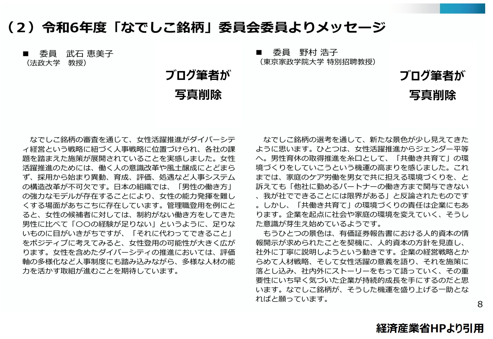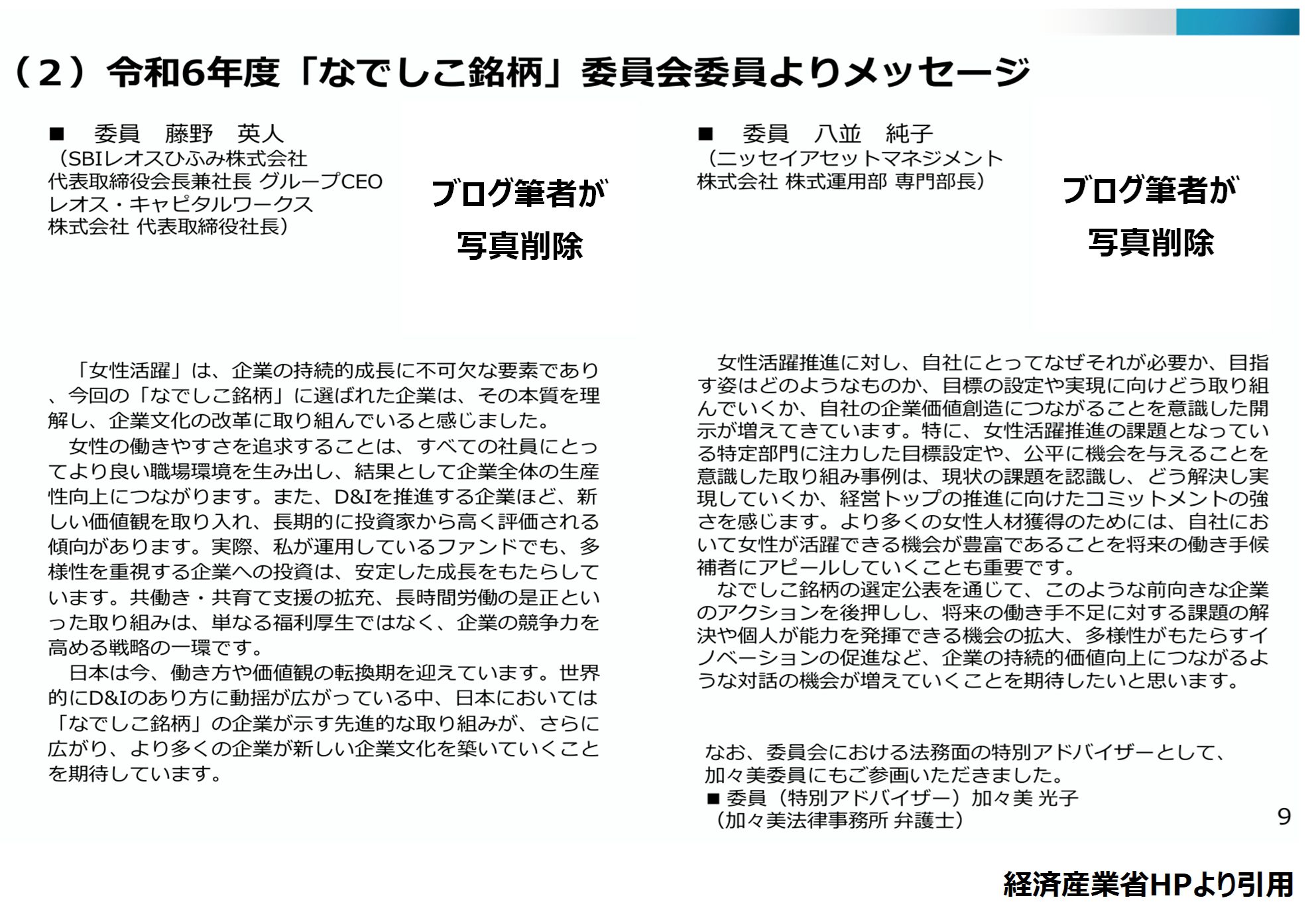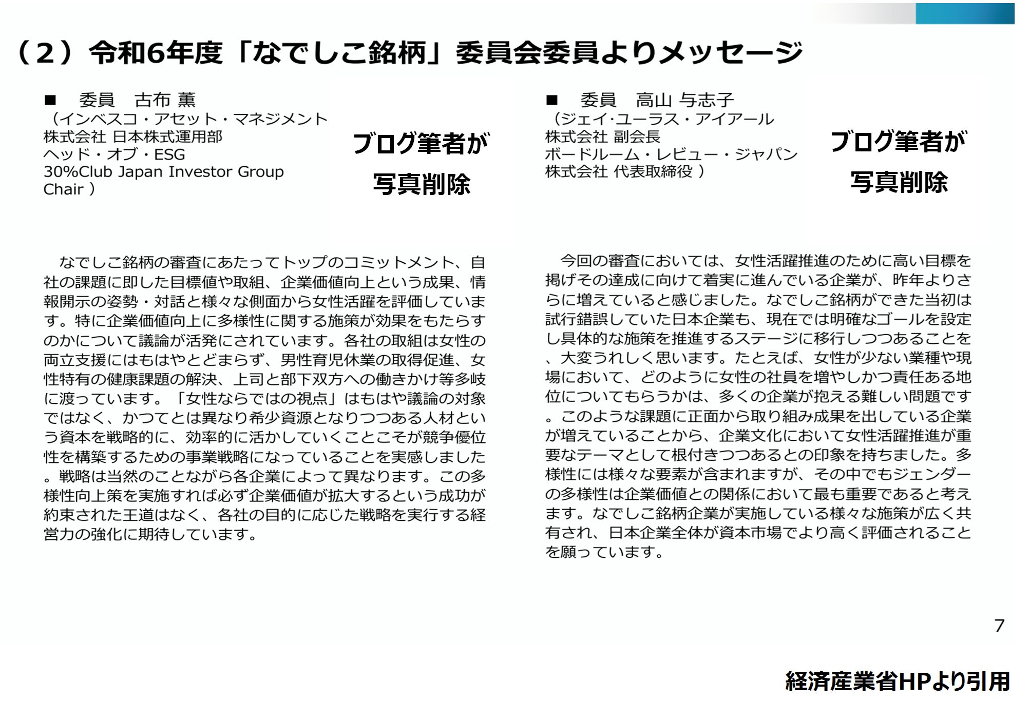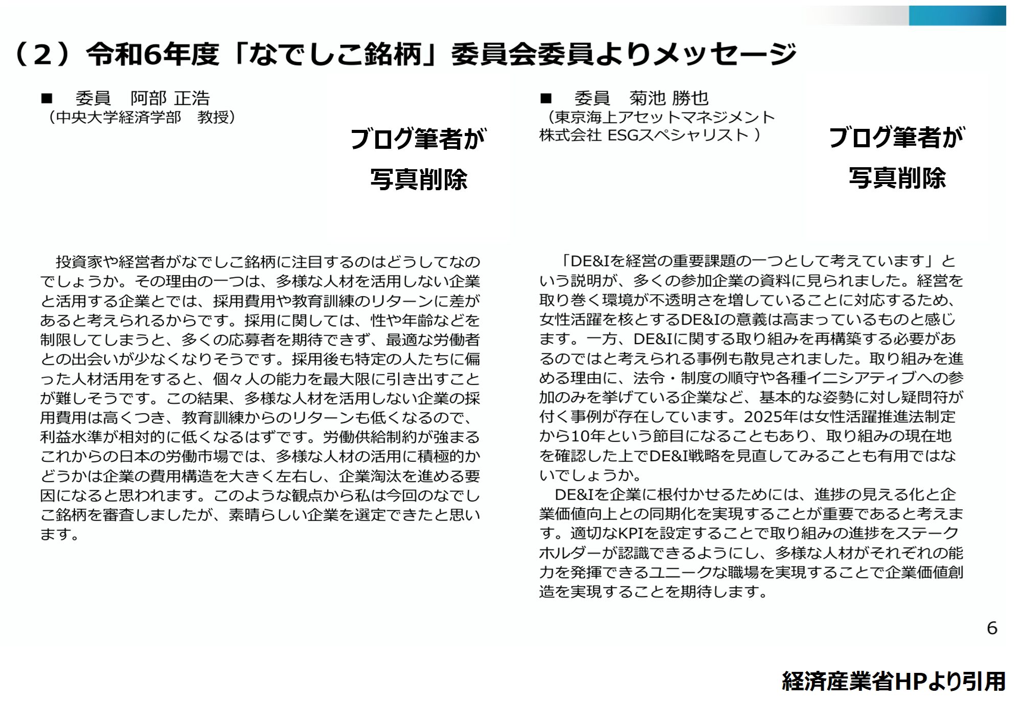 令和6年度「なでしこ銘柄」委員会委員のメッセージから抜粋