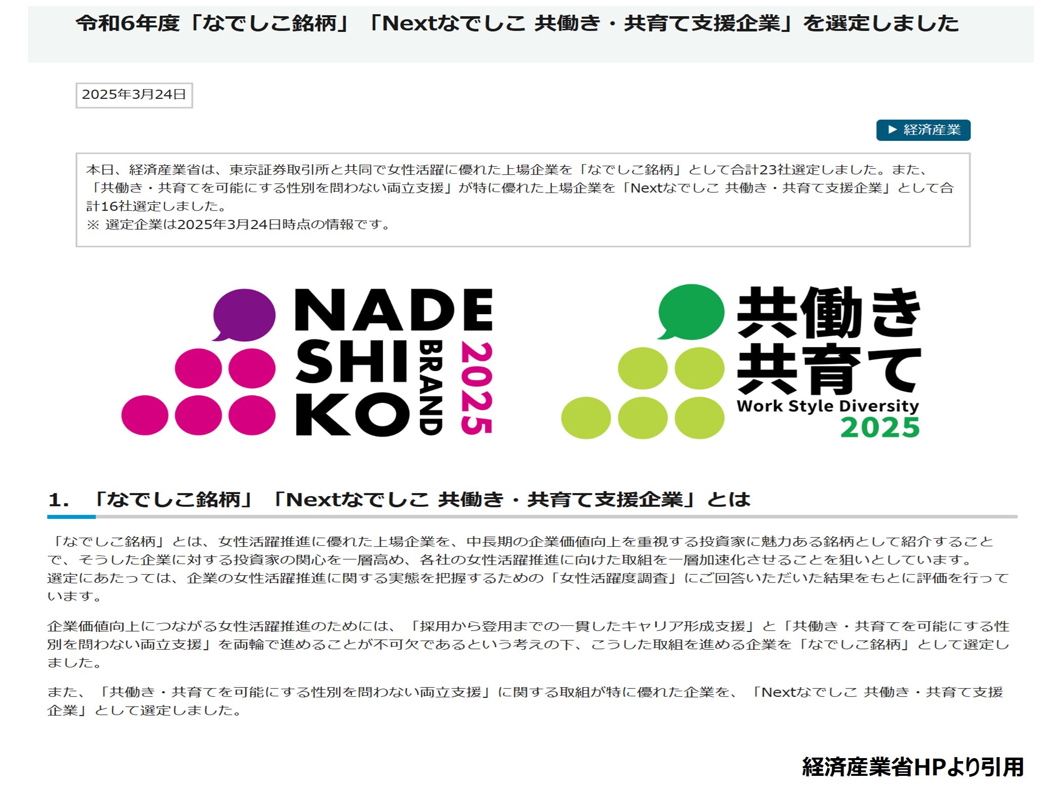 ◆「なでしこ銘柄」に関する記載は、経済産業省HP上に掲載された、2025年3月25日時点の情報を参照しました。