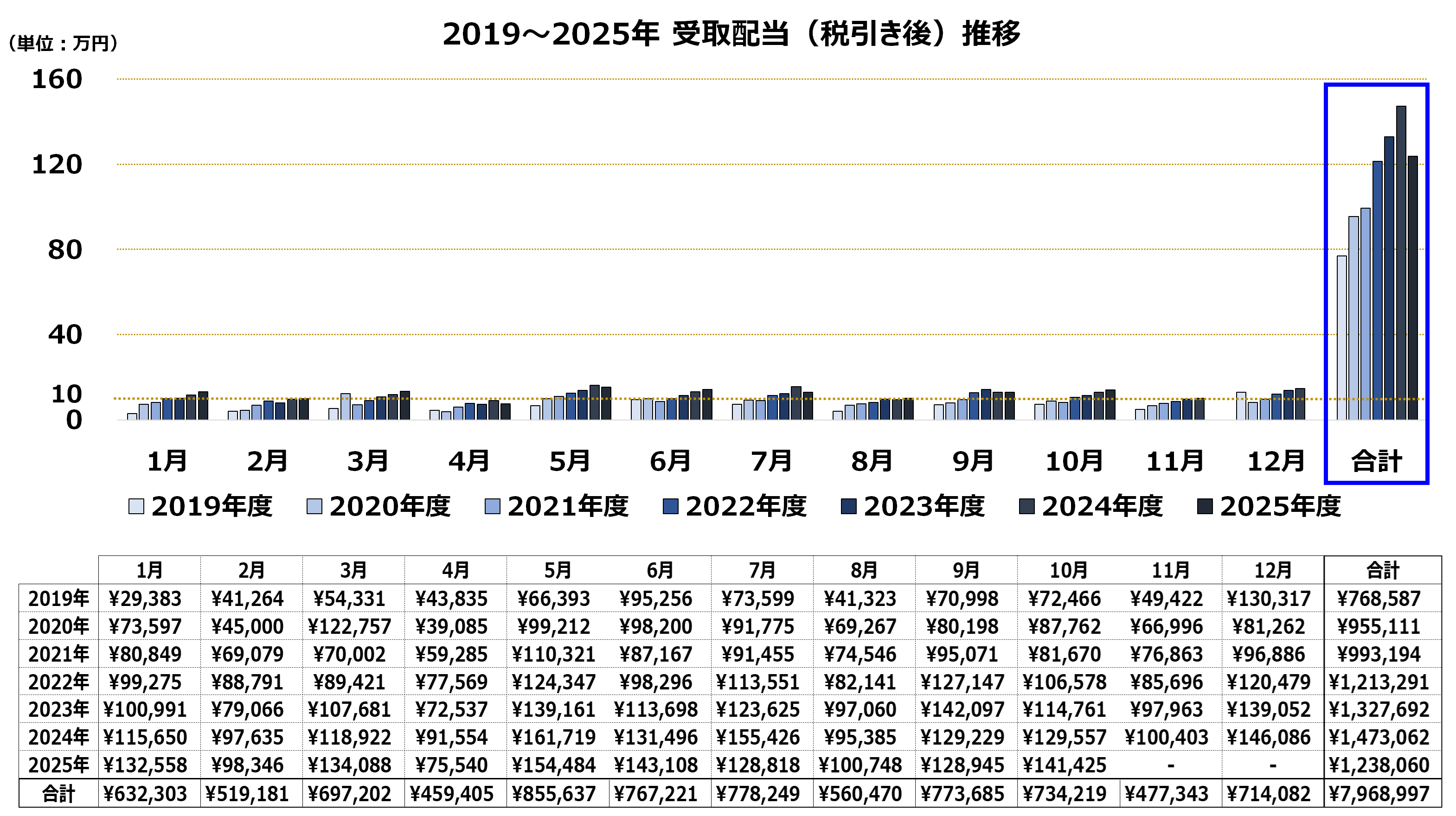 2019年から2025年10月までに約797万円の配当を受け取りました。