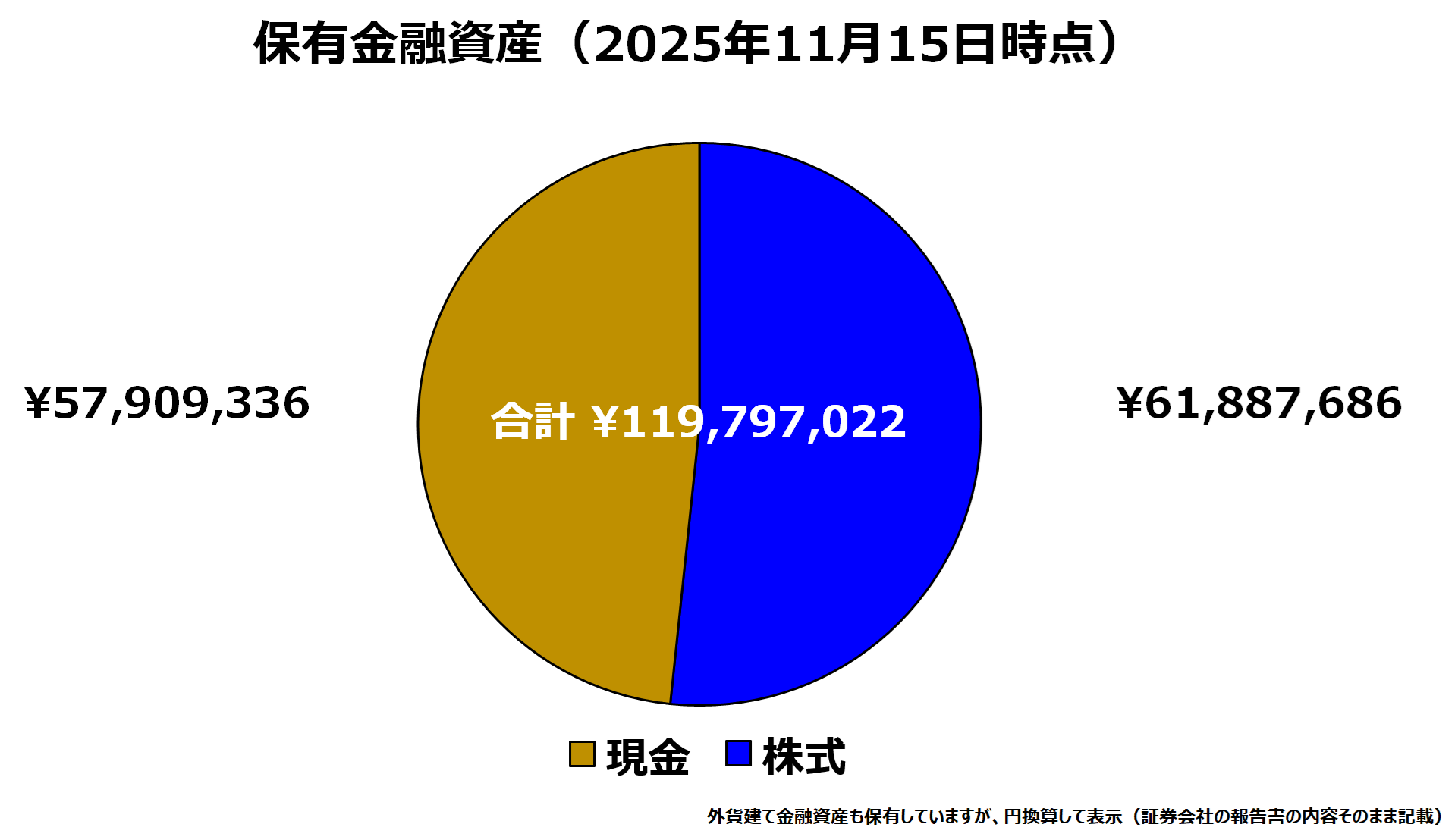2025年11月15日時点の保有金融資産総額は約1億19百万円。