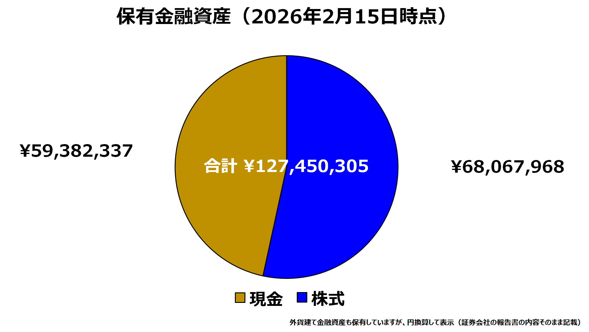 2026年2月15日時点の保有金融資産総額は約1.27億百万円。