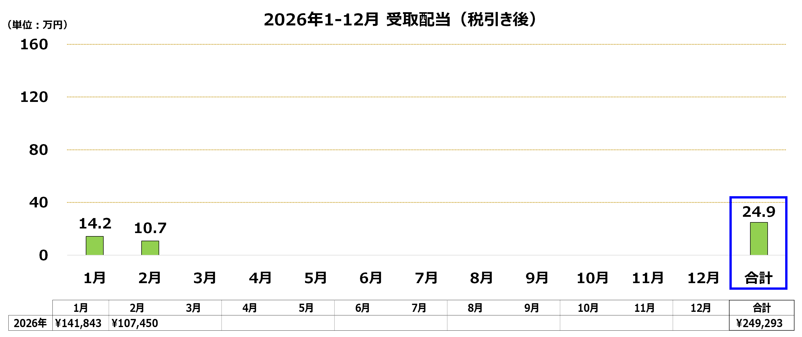 2026年2月の受取配当(税引き後)は約10.7万円。