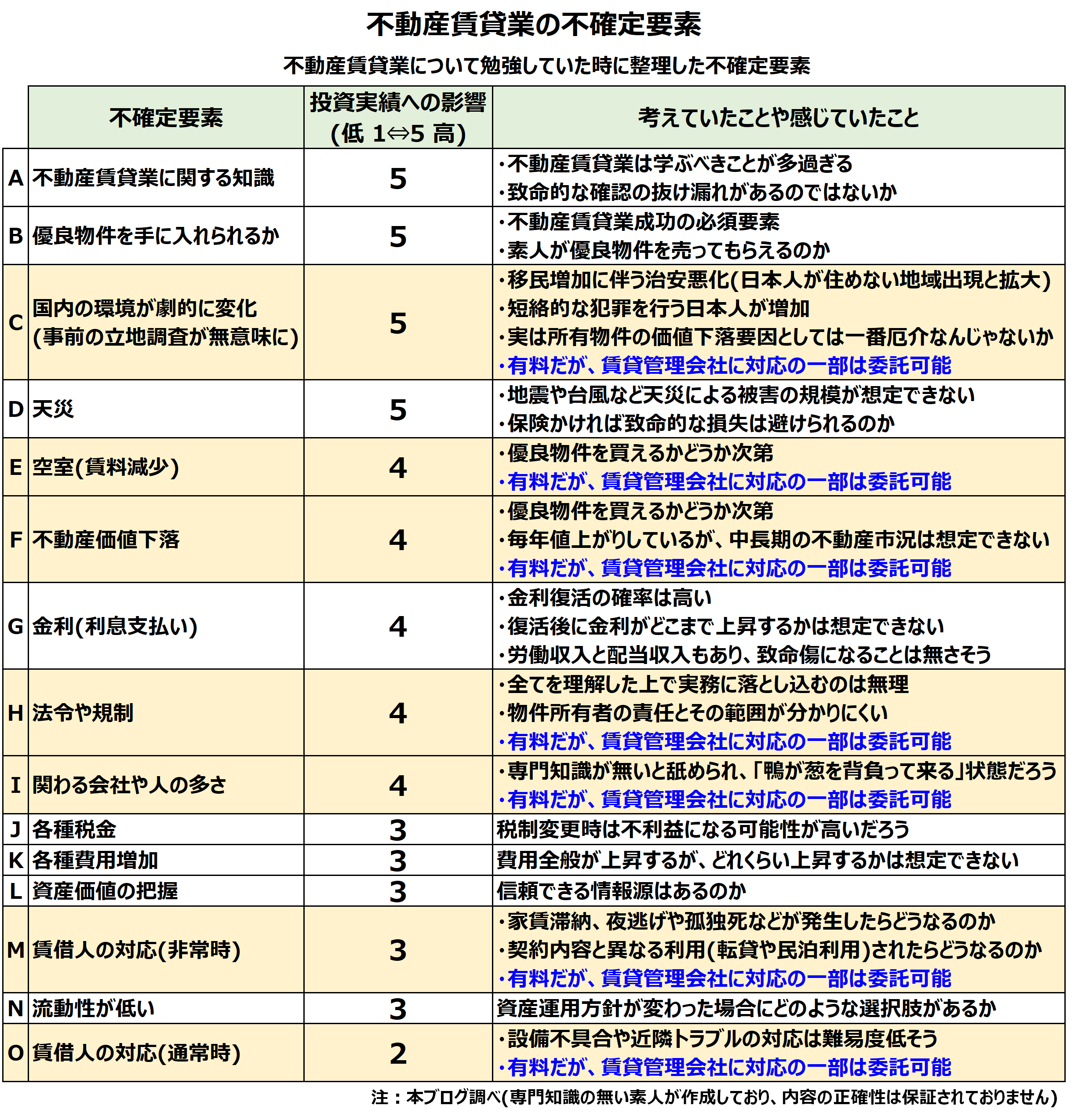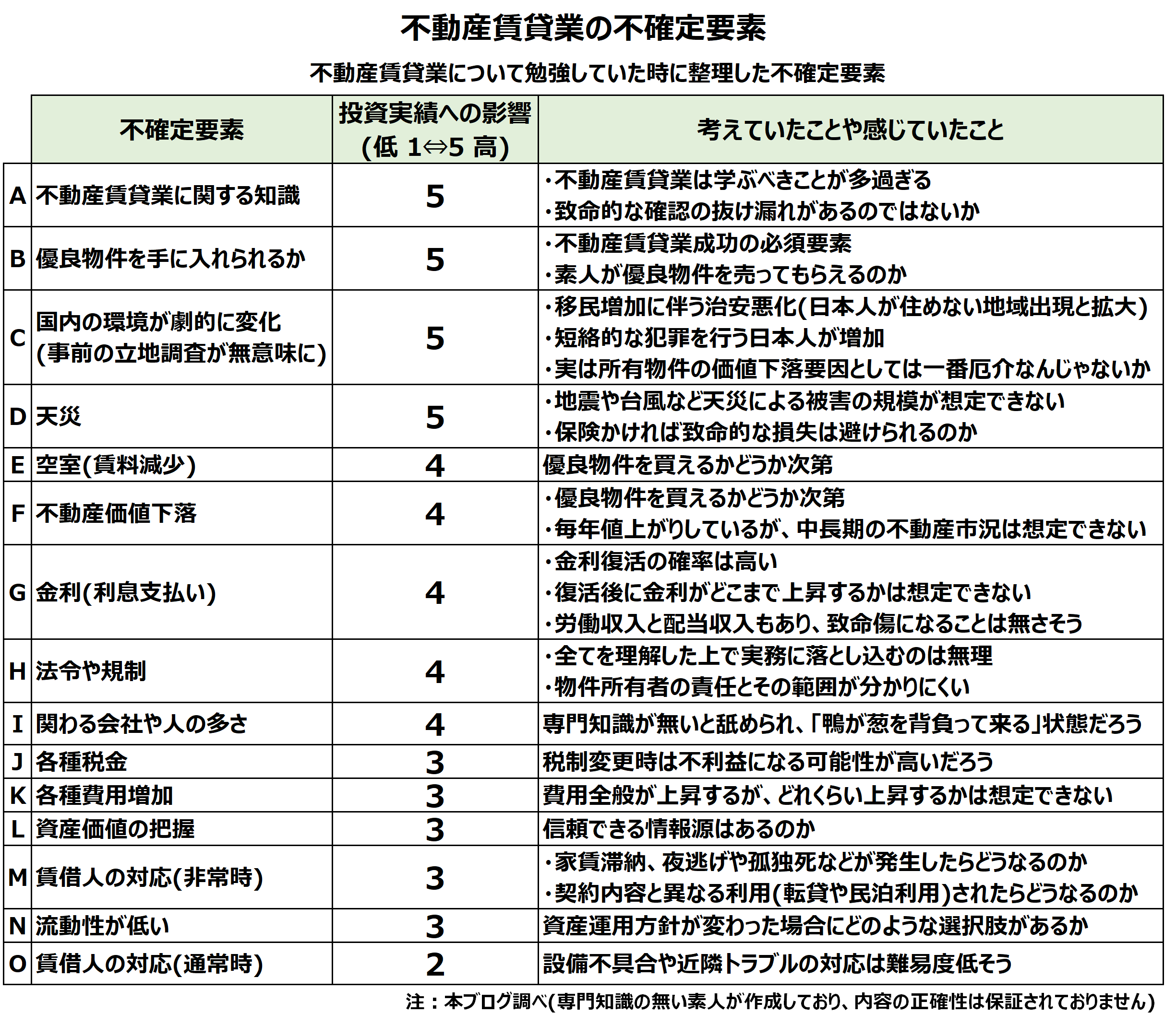 不動産賃貸業の不確定要素についても整理しました。