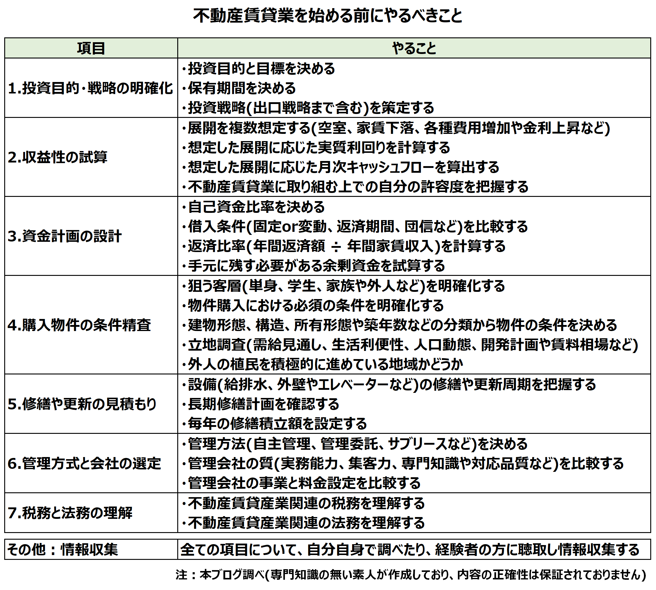 不動産賃貸業を始める前にやるべきこととして、当時の私が考えたものは次の通り。