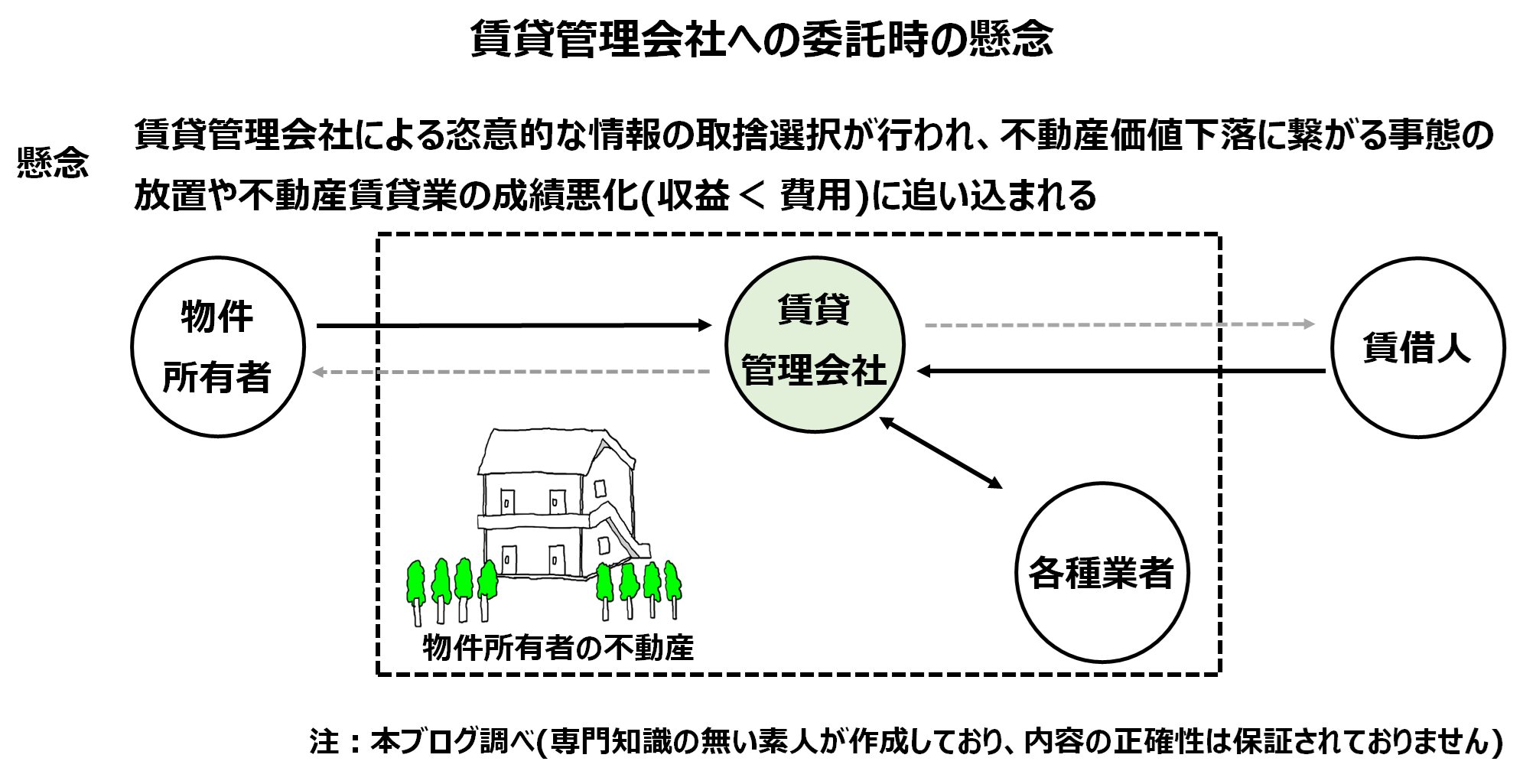 プロパティマネジメントとか名前だけ立派にして報酬を上げておきながら、従来の賃貸管理もまともにできない賃貸管理会社が増加したら、物件所有者にとっては恐怖でしかないですよね。