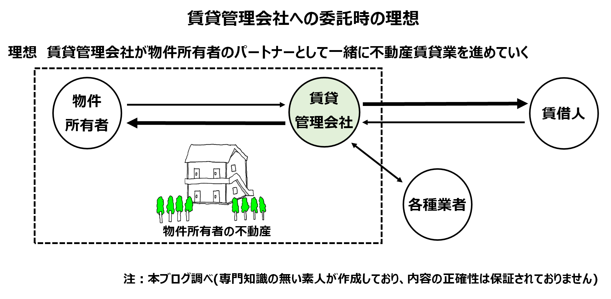 自分の資産の管理を任せる相手が責任感、労働倫理感や能力を持っているかを自信を持って判断することができず、不安要素を残したままになるなら、それは不動産賃貸業をやるべきではないということになる。