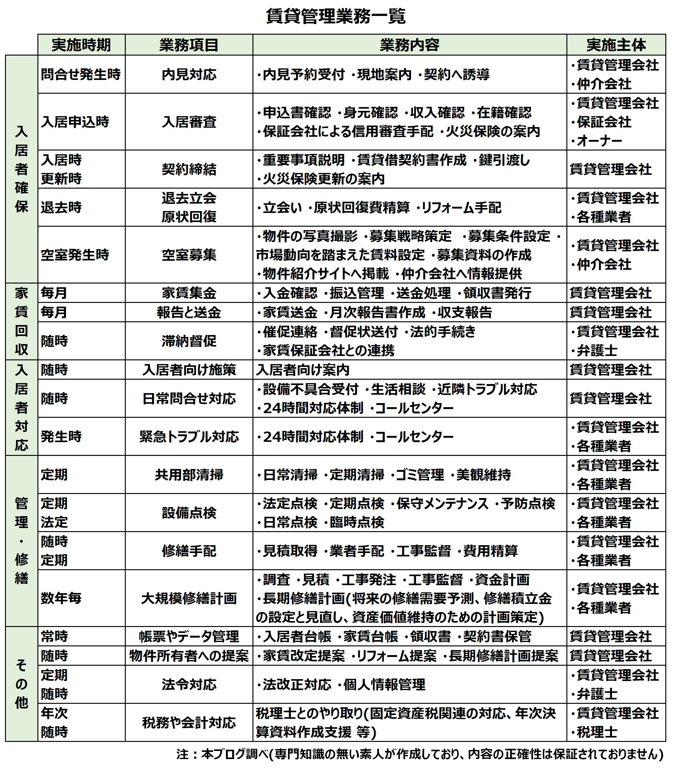 賃貸管理会社についての記載内容に関する注意事項です。